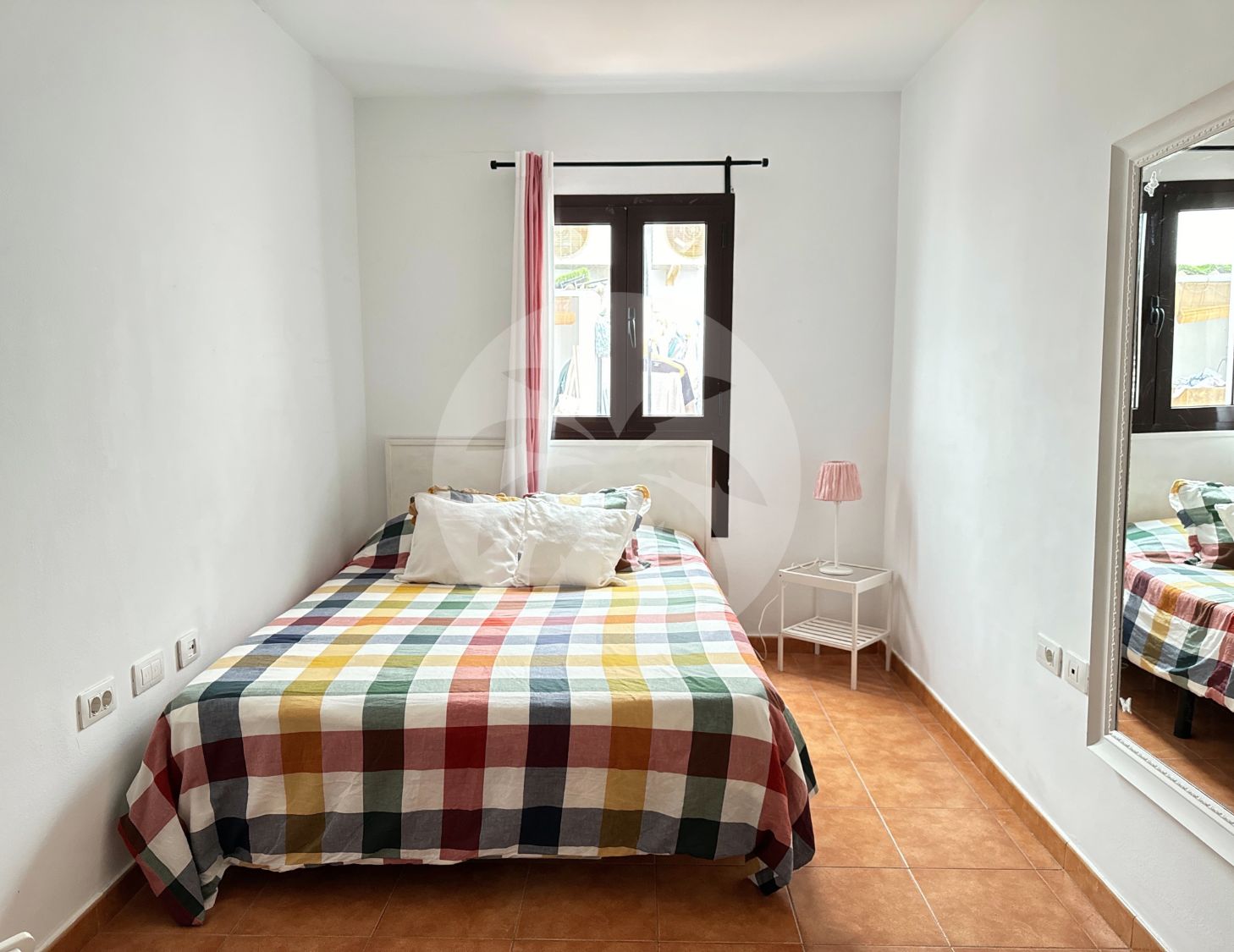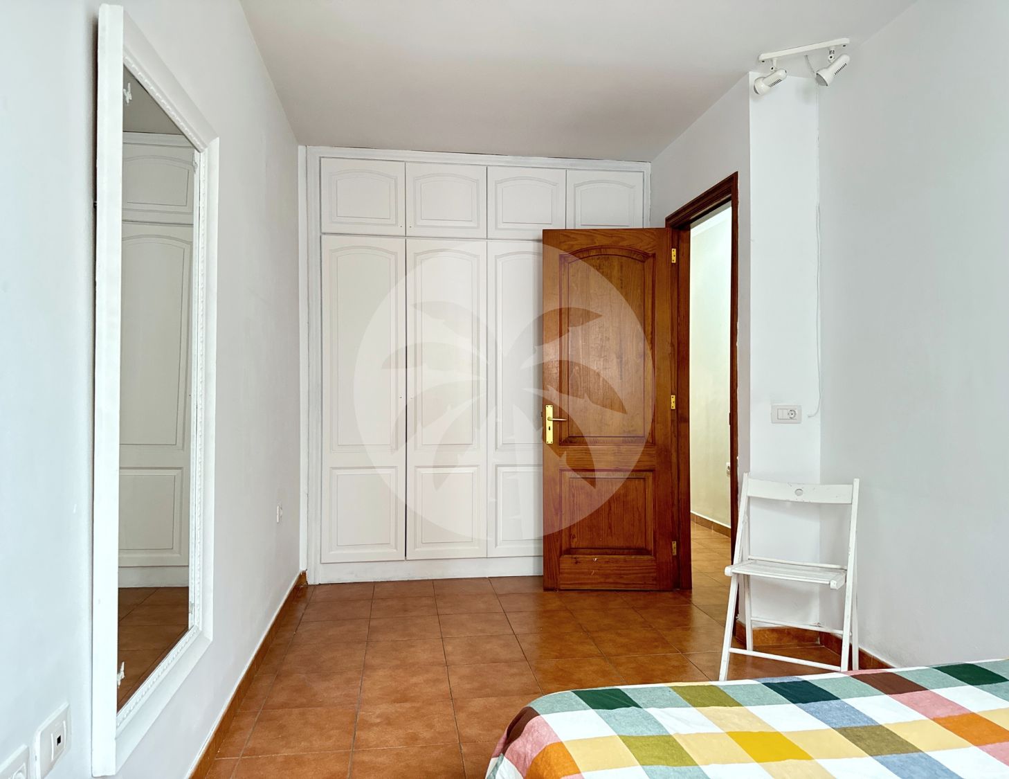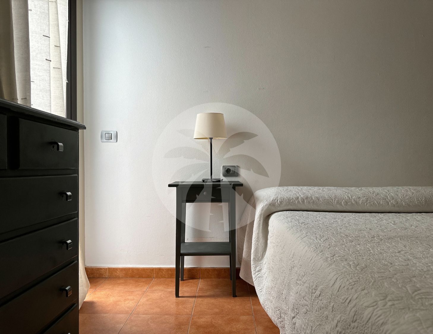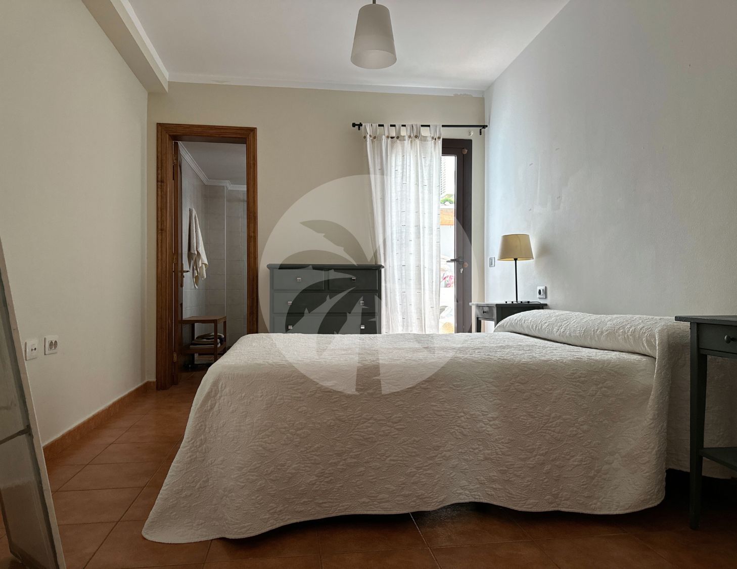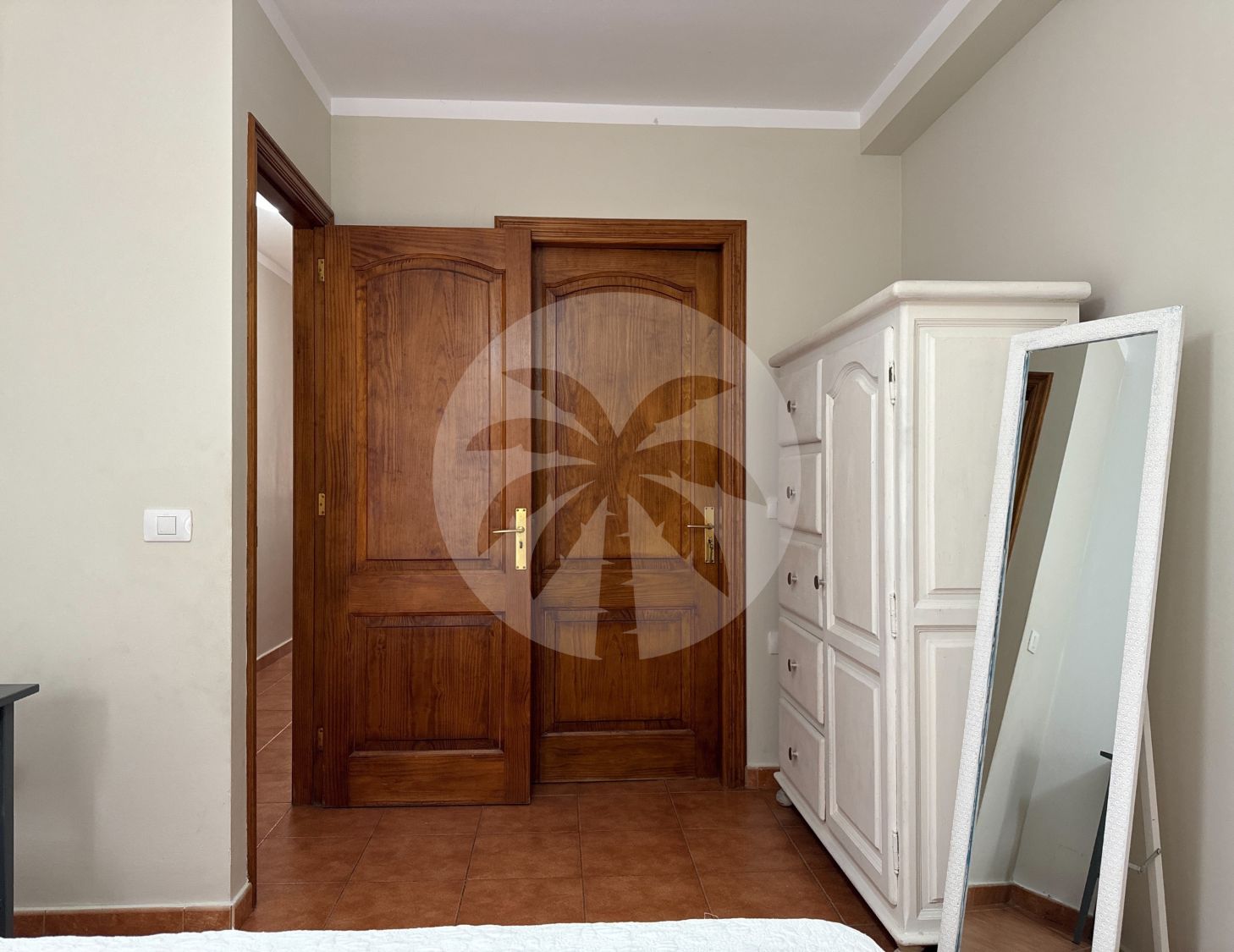 The master bedroom has a dressing room and en-suite bathroom, with two large-capacity chests of drawers. The second bedroom has large built-in wardrobes with wood finishes. This room has a desk ideal as a study/work area. Both rooms are furnished and equipped with a double bed and a bedside table.